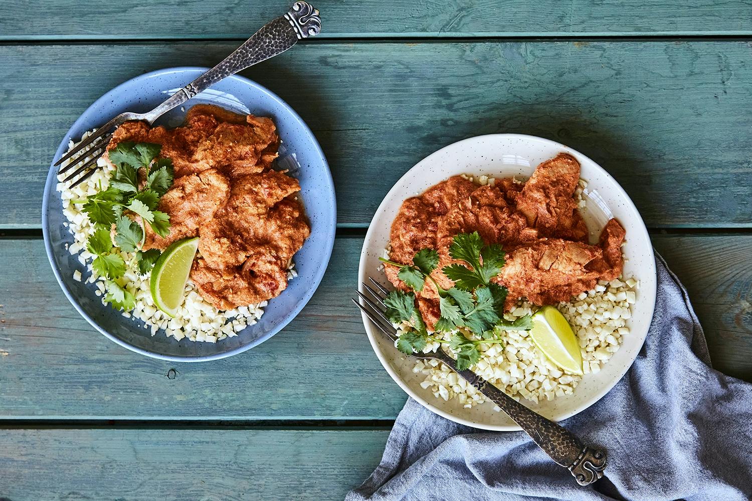 - Ripottele korianterisilppua padan pinnalle ja tarjoa limettilohkojen ja kukkakaaliriisin kanssa