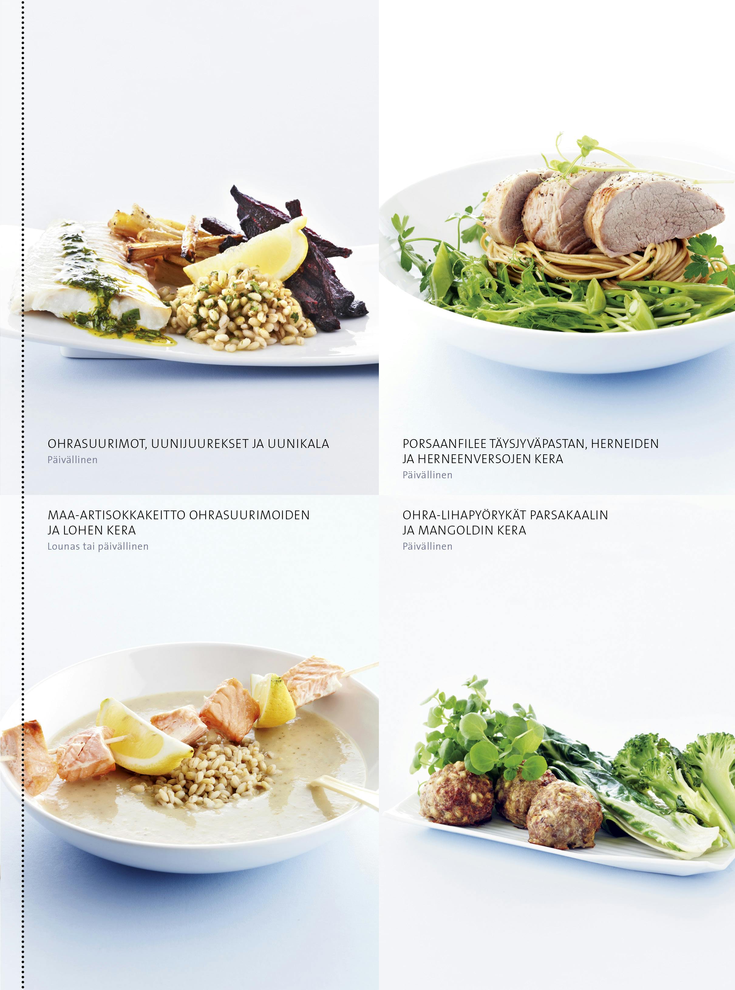 Lataa täältä KUNTO PLUSsan ruokakorttien reseptit ohrasuurimot, porsaanfile täysjyväpastan, herneiden ja herneenversojen kera, maa-artisokkakeitto ohrasuurimoiden ja lohen kera, ohra-lihapyörykät parsakaalin ja mangoldin kera.