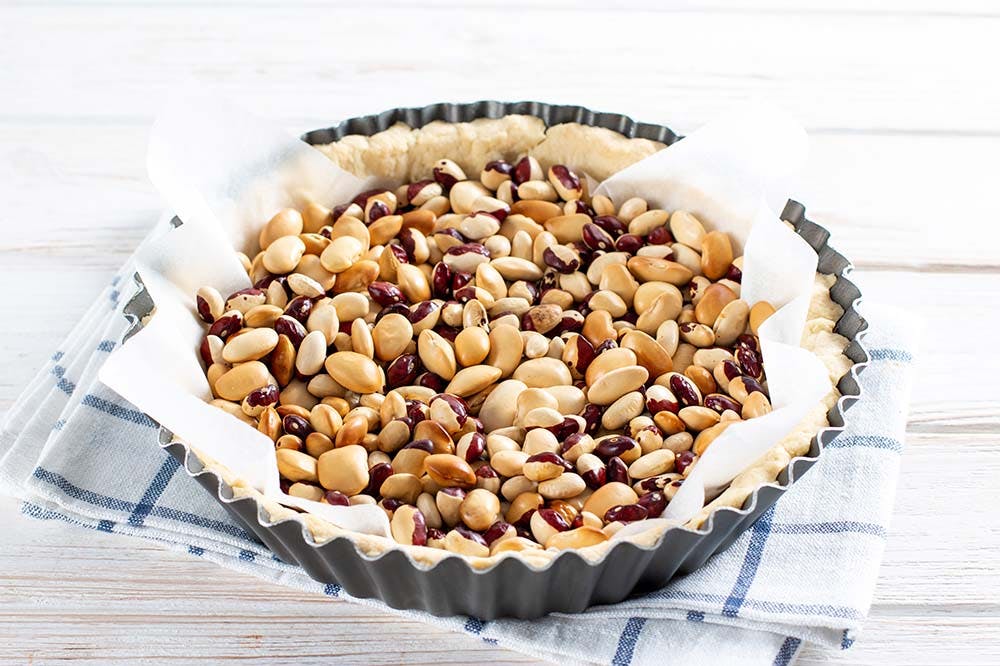 Kuivatut pavut tai herneet painona vuoassa estävät taikinan valumisen vuoan reunoilta pohjalle samalla kun ne pitävät pohjan matalana. Ilma niitä taikina pääsee lämmetessään valumaan alas.