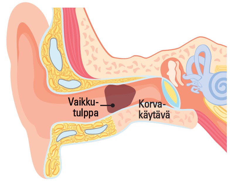 Mistä tietää, että korvaan on kertynyt niin paljon korvavaikkua, että korvakäytävä on tukossa? Muun muassa nämä merkit voivat kieliä tukoksesta: