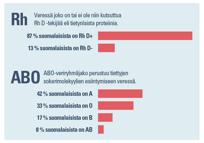 Veriryhmiä voi jaotella monellakin tavalla, mutta tunnetuimpia ovat jaot Rh D ja ABO-veriryhmiin.