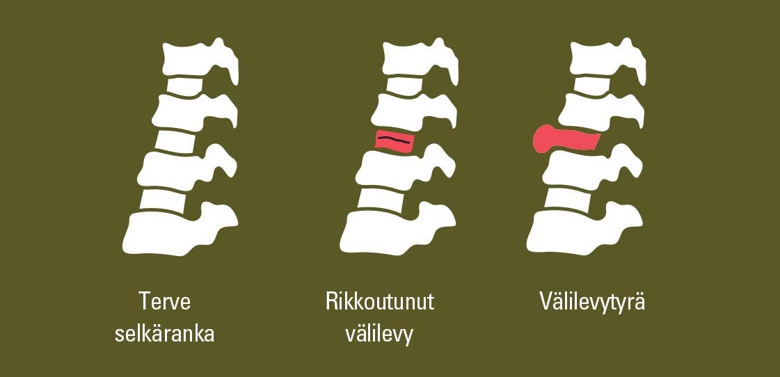 Välilevyt toimivat iskunvaimentimina nikamien välissä ja ne tekevät selkärangasta taipuisan ja liikkuvan. Jos välilevy rappeutuu, sen pinta saattaa rikkoutua niin, että välilevyn sisältöä työntyy selkäydintilaan hermojuuria painamaan. Repeämä ei yleensä liity vammaan tai ponnistukseen, vaan useimmiten rappeutuminen on vähittäistä.