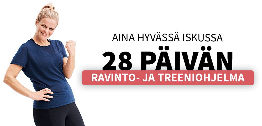 Tee vuodesta 2025 TERVEYSVUOSI! Käynnistä uusi vuosi 28 päivän mittaisella ”Aina hyvässä iskussa” -ohjelmalla. Ohjelma tuo treenin ja terveellisen ruuan pysyväksi osaksi arkea, jolloin voit saavuttaa terveellisen painon tai pitää sitä yllä.