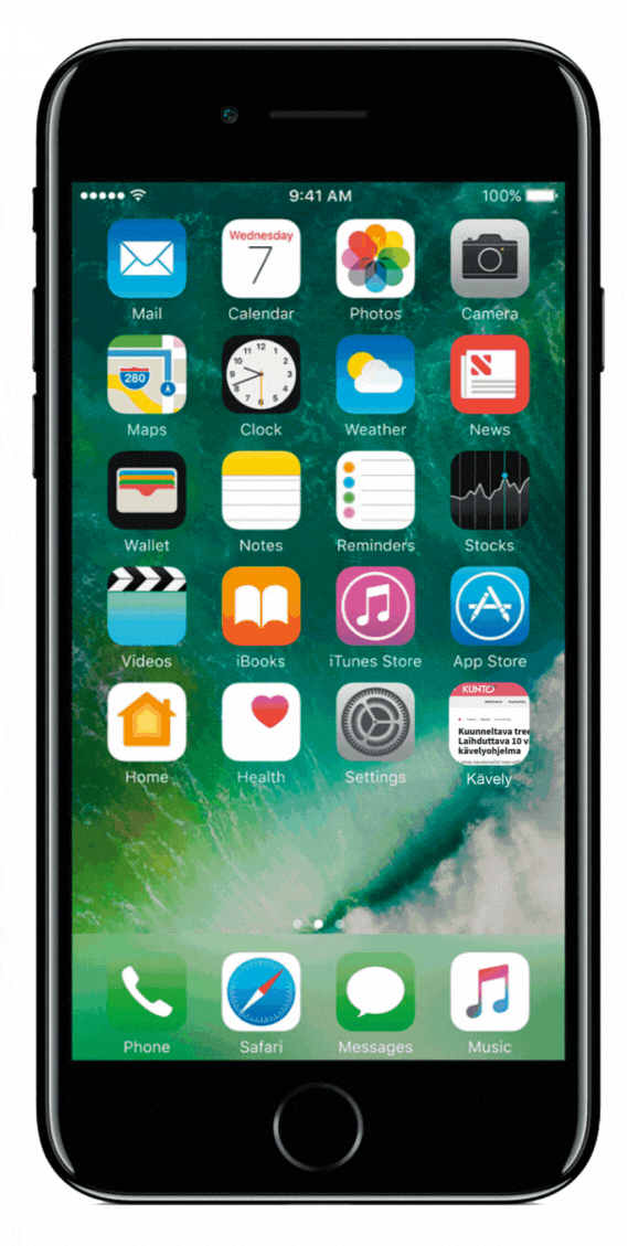 Jos haluat esimerkiksi käyttää äänitiedostoja ilman taustamusiikkia, voit lisätä 10 viikon kävelytreenin nettisivun puhelimesi aloitusnäyttöön: