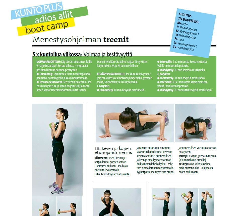 Ravitsemus- ja treeniohjeet 8 viikoksi. Runsaasti vaihtelua.