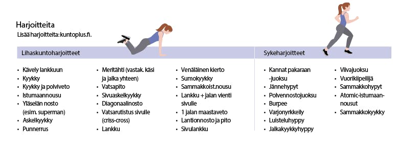 Treenaa 8 viikkoa KUNTO PLUSsan treenivideoiden mukaan ja noudata viittä selkeää ravitsemusohjetta. Saat näkyviä tuloksia, lihaskuntoa ja treenimotivaatiota. Saat koko ohjelman täältä.