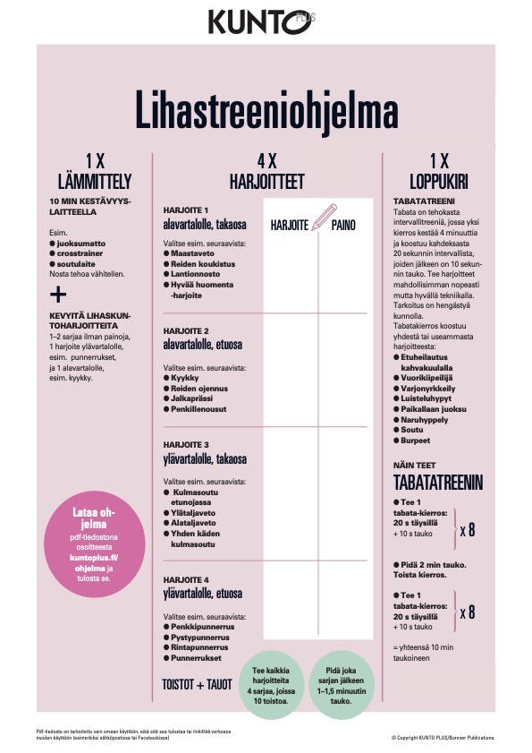 Kunnollinen ohjelma on tuloksellisen treenin edellytys. Tutustu treeniohjelman laatimisen perusteisiin ja laadi rohkeasti oma ohjelmasi.