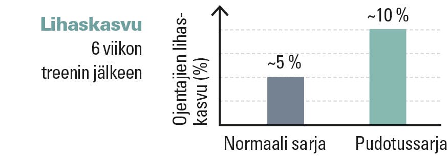 Eräässä tutkimuksessa yksi ryhmä teki 6 viikon ajan ojentajia taljassa pudotussarjana ja toinen ryhmä 3 x 12 toiston sarjana. Pudotussarjoja tehneiden kehitys oli ripeämpää.
